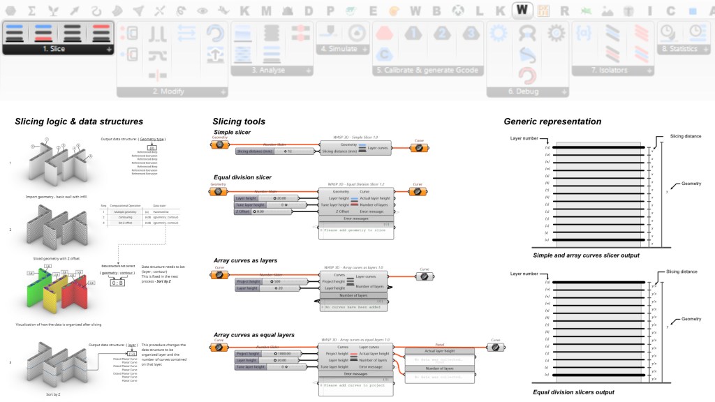 The WASP Toolpaths Plugin is a suite of computational tools and optimization workflows for Grasshopper, developed to enable architects, designers, and engineers to translate digital designs directly into fabrication-ready toolpaths for the WASP Crane.