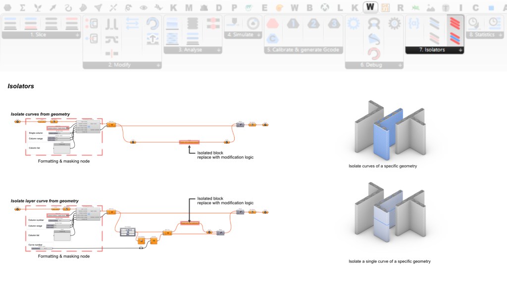 Developed with a “plug-and-play” philosophy, the toolset is designed to integrate seamlessly into existing Grasshopper workflows, or directly importing the geometry into Grasshopper from Rhino. Allowing users to focus on generating meaningful, performative designs, rather than managing the technical complexity of toolpath generation.