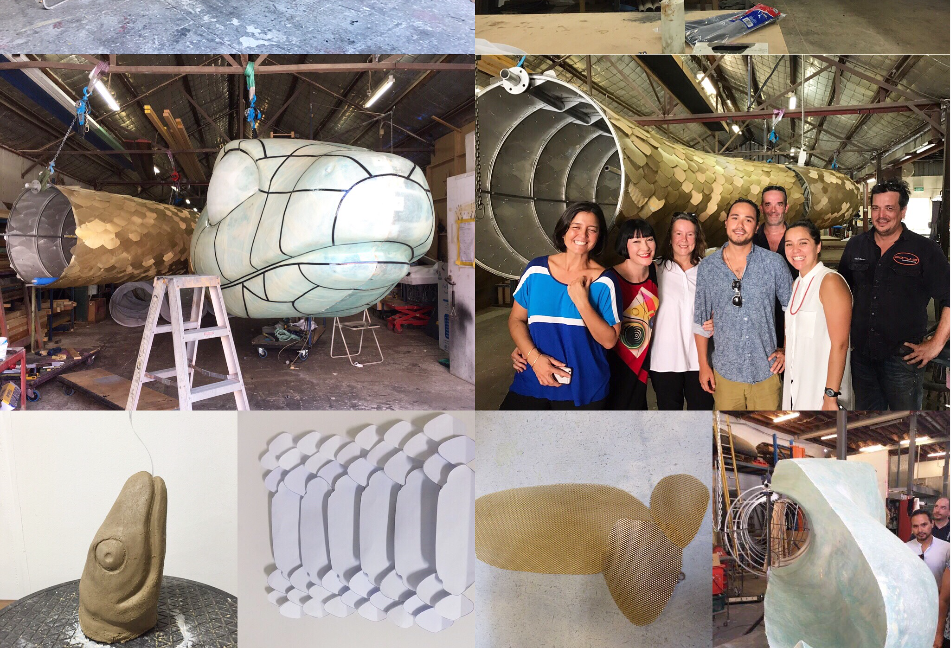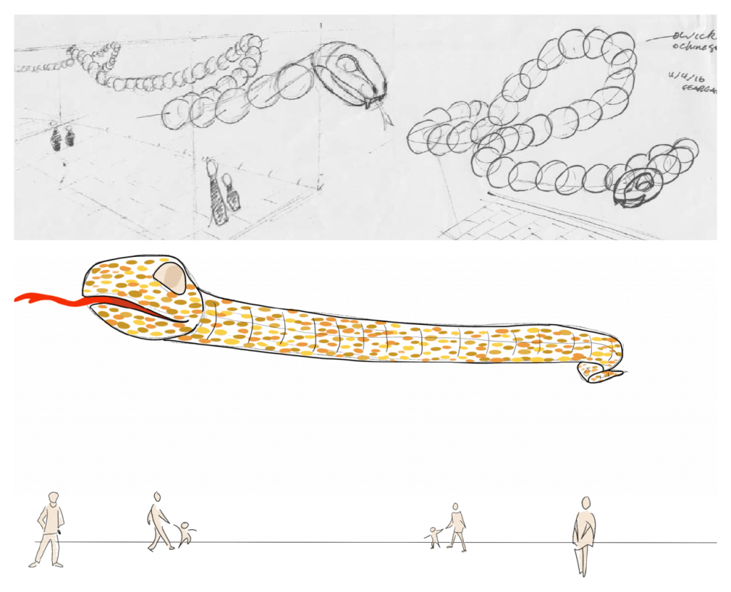 Basic samples were produced to communicate the design intent to the fabricator. The body of the snake was constructed in modules consisting of laser cut aluminum plate and round tube to stiffen the body. Modules were
