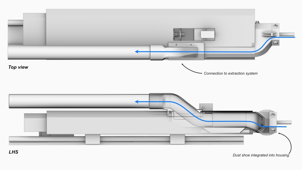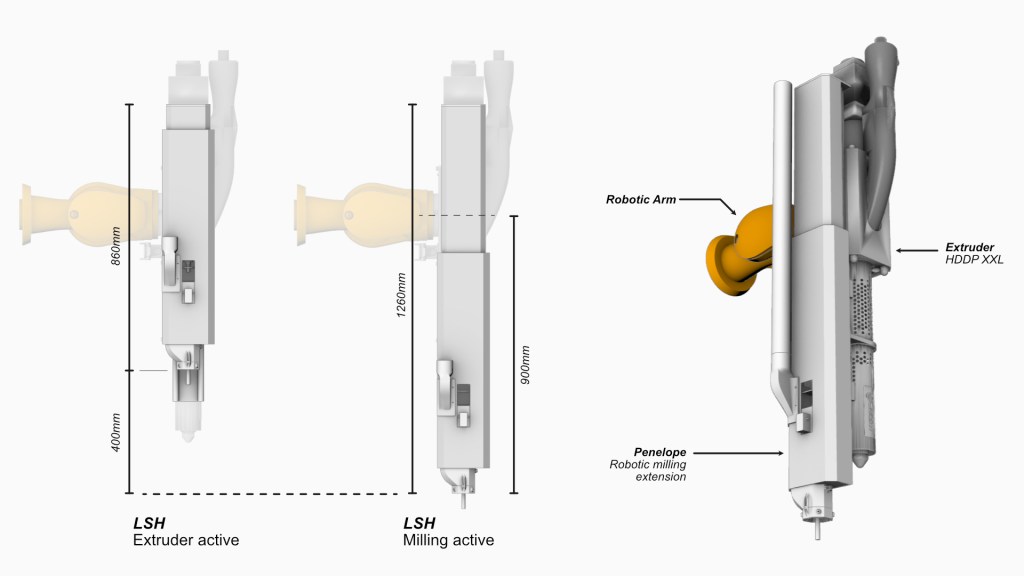 By integrating a retractable milling motor on to the existing waspXXL extruder, this end-effector aims to increase production detailing opportunities, and remove operational downtime between endeffector changeover.