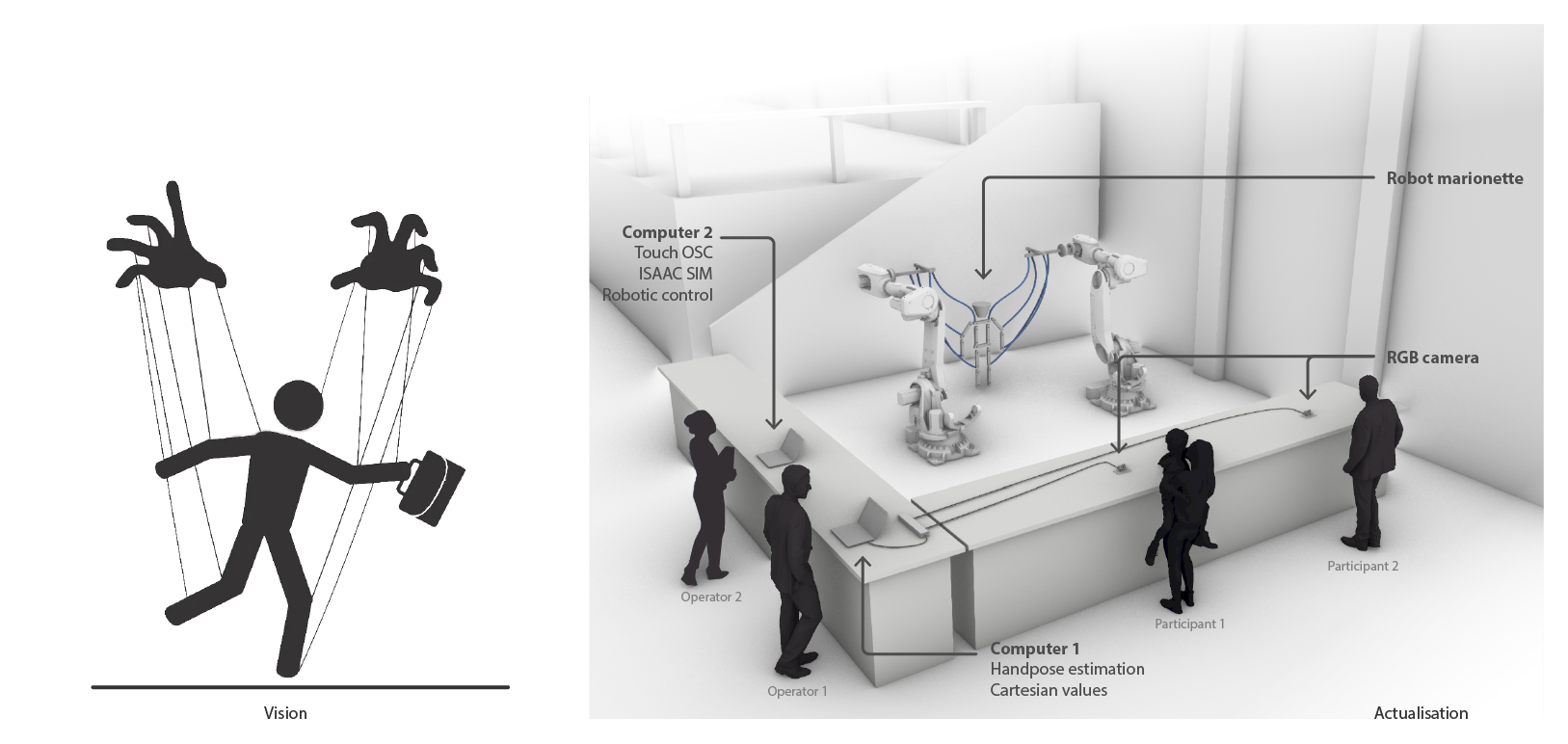 Our project Strings of Life is a dual robotic recreation of a marionette, where 2 participants would use their hands to interact with a camera to manipulate the robot’s position, making the puppet move.