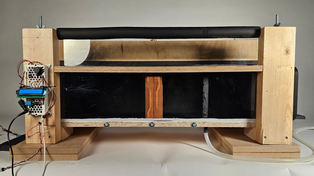 Testing cross ventilation strategies with the application of heat to simulate summer and winter, or day and night scenarios was the next phase of this project. The test chamber would need to be reconfigured to support 2 test geometries along with thermal sensors to read the ambient room temperature and the wall temperature (this was all constructed and completed). For this test we would observe the time it would take for smoke to dissipate from the enclosed volume. Then we would run the same test again with the addition of a heat lamp to observe if the application of heat would produce different results. This test would have been a given us insight into how a cross ventilation system performs against changes in air buoyancy.