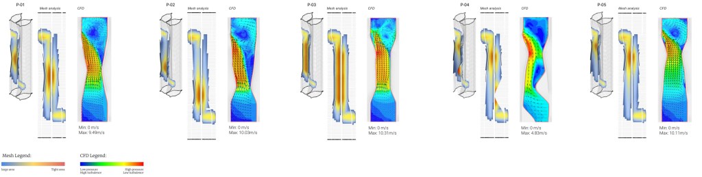 Correlations can be seen observed between the locations of tight area openings in the mesh analysis and moments of high pressure in the CFD analysis.