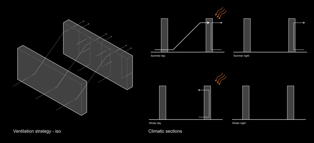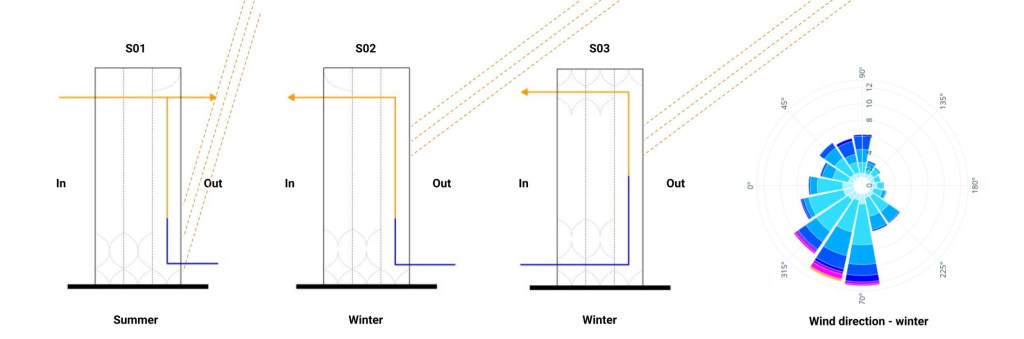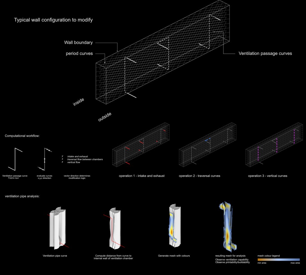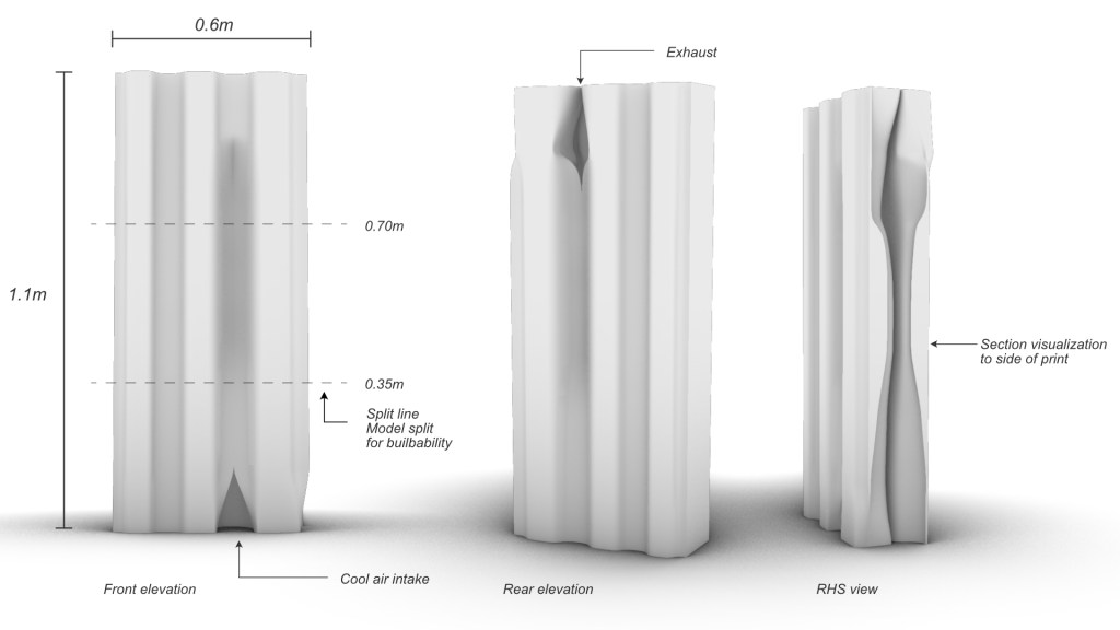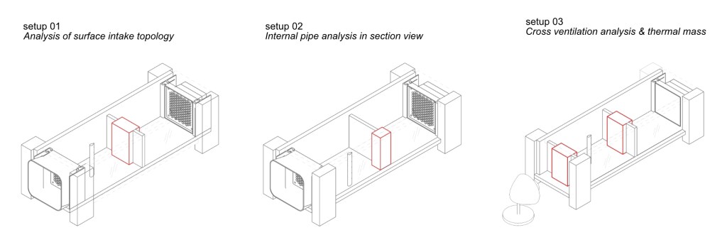 Ventilation is a broad and complex field of study that is linked to heat, humidity, air density and geometry. As this project took place over a six week period we narrowed our focus to a small section of this field of study. The main concepts being intake typology, internal pipe length, and cross ventilation opportunities. The reason for this is that these factors can be easily tested and can be implemented into a digital toolkit for the development of the large scale print taking place in 2025.